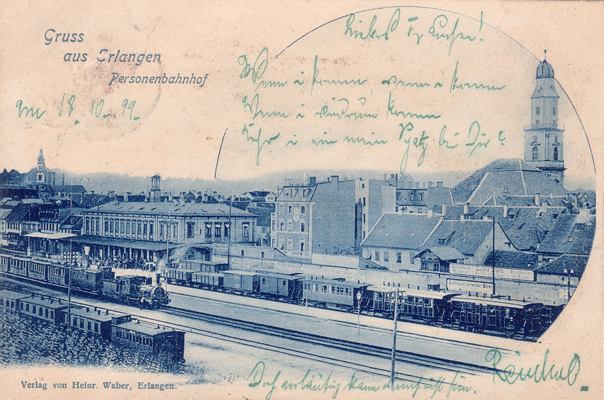 Im ersten, am 01.10.1844 eröffneten Abschnitt Nürnberg - Bamberg der Ludwig-Süd-Nord-Bahn, die zehn Jahre später Lindau mit Hof verbinden sollte, liegt Erlangen.