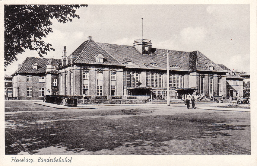 Am 01.02.1927 wurde der Hauptbahnhof in Flensburg seiner Bestimmung übergeben. Er löste den mittlerweile für das gestiegene Verkehrsaufkommen zu klein gewordenen und wegen der Platzverhältnisse nicht erweiterbaren Bahnhof in der Altstadt ab, der seit dem 25.10.1854 - der Eröffnung der Strecke über Husum nach Tönning mit Zweigstrecke von Oster Ohrstedt nach Klosterkrug (liegt bei Schleswig) und Rendsburg - in Betrieb war. Am 15.04.1864 folgte die Strecke von Flensburg nach Rothenkrug (heute Rødekro, Dänemark).
