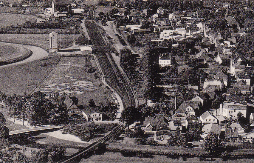 Am 01.08.1889 wurde mit der Strecke Wrist - Itzehoe eine ca. 21 Kilometer lange Verbindung zwischen der Altona-Kieler Bahn und der Marschbahn Altona - Tondern geschaffen. Erste Station war nach knapp drei Kilometern Kellinghusen. Der Bahnhof hatte Verbindung zum kleinen Hafen am Fluss Stör, hier kenntlich durch das grroße Lagerhaus links vom Bahnhof direkt am Wasser.