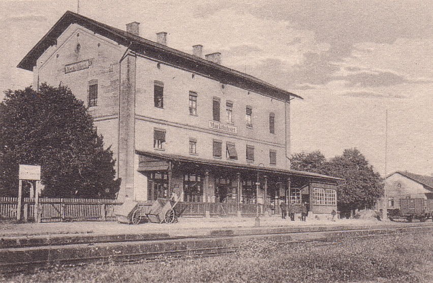 Unterschiedliche Schreibweisen sind zu erkennen: Die offizielle und richtige getrennte Schreibweise wird vom Hersteller der Ansichtskarte mit einem Bindestrich ergänzt – aber die Ansichtskartenverlage sind diesbezüglich nicht immer besonders aufmerksam gewesen. Interessanter ist die Zusammenschreibung am Bahnhofsgebäude. |