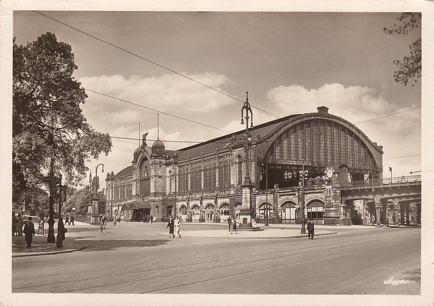 Gerti schreibt nämlich der Empfängerin in Zwickau: "Bin in Hamburg-Dammtor Bhf 12.27 gut angekommen..." Möglicherweise ist Gerti mit D 160 von Leipzig angereist, der zumindest im Winter-Kursbuch 1938/39 eine Ankunftzeit von 12.25 Uhr in Hamburg Dammtor aufweist.
